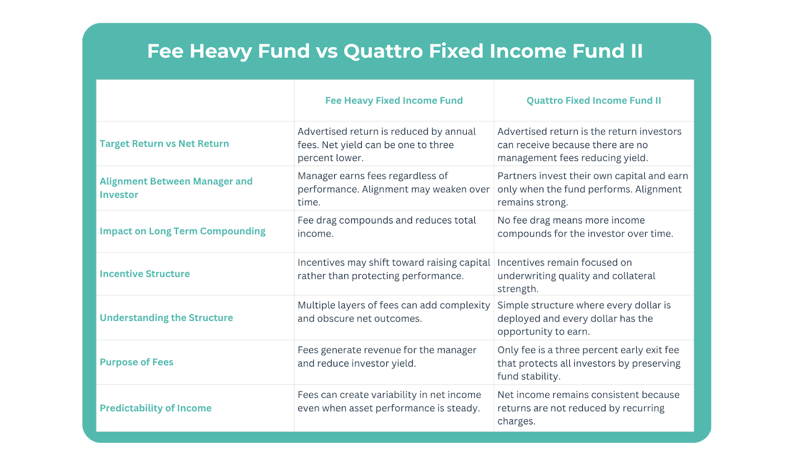At Quattro Capital, the partners made a deliberate choice. We do not charge management fees on our fixed income funds. This decision is grounded in stewardship, transparency, alignment, and a belief that our investors should benefit fully from the income their capital generates.